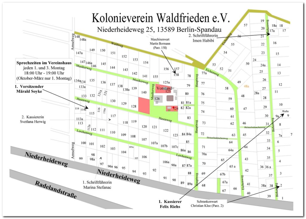 Parzellen- und Wegeplan der Kolonie Waldfrieden e. V. Stand 01/2025